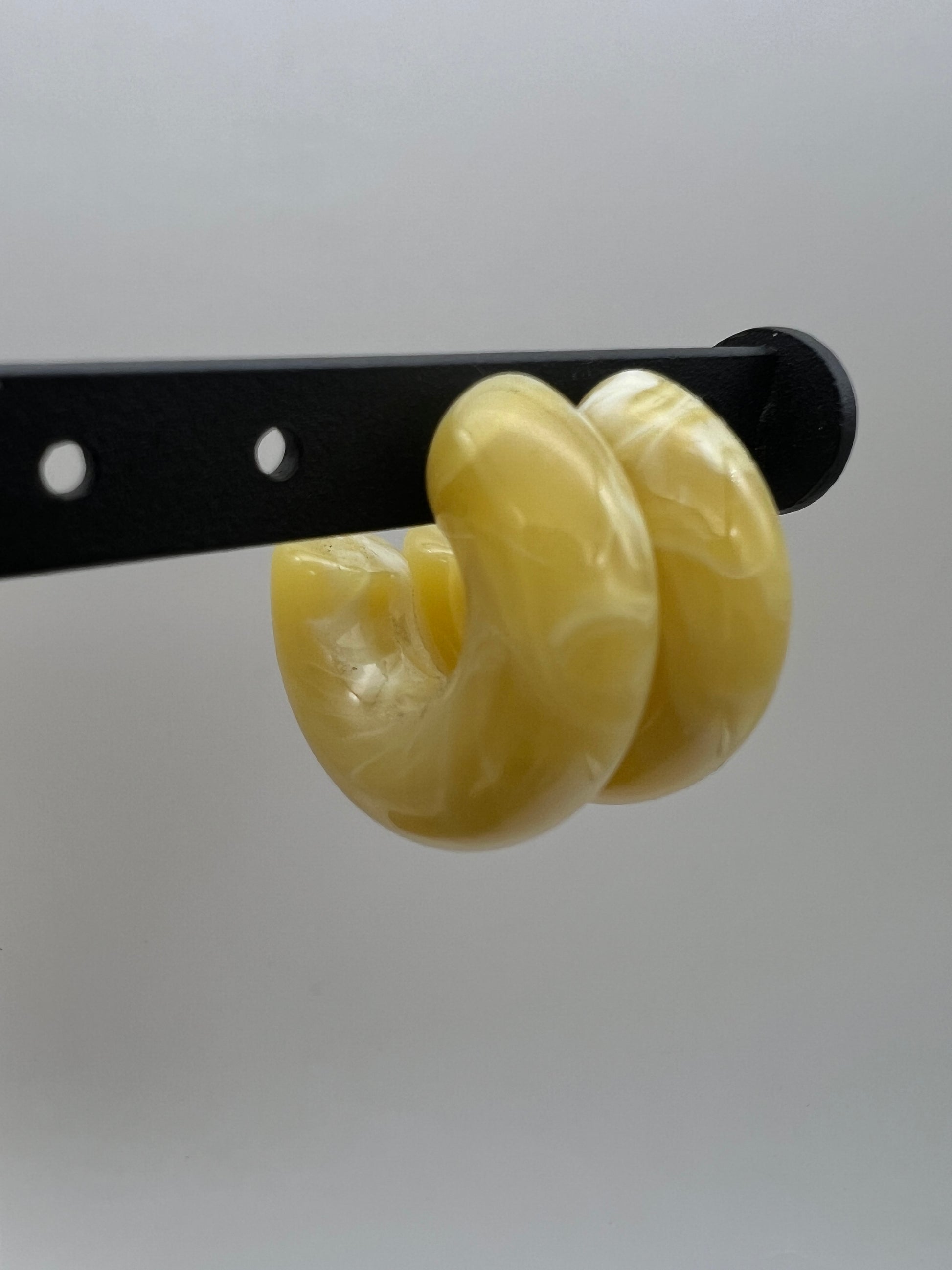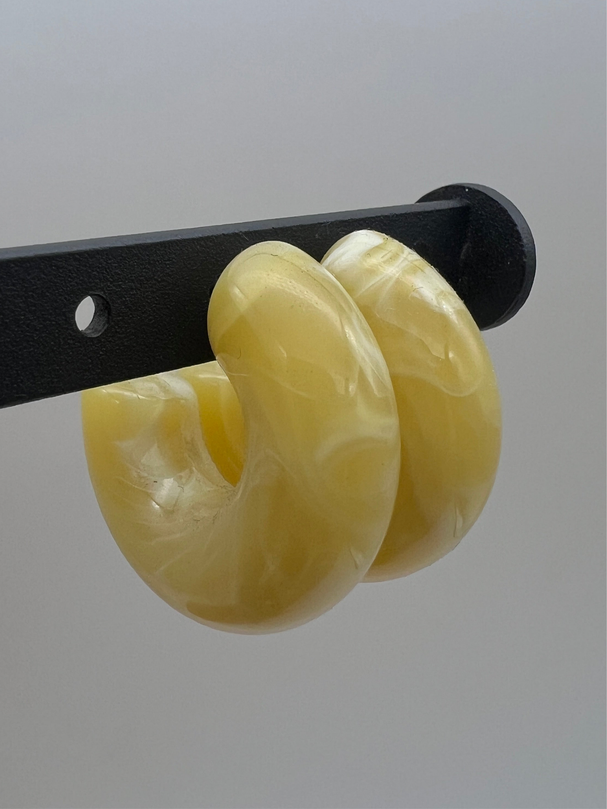 Inspired by golden mornings and soft café tones, the Café Loops bring sculptural warmth to everyday style. Crafted from marbled resin with a glossy finish, these chunky hoops glow in the light and add a touch of vintage-luxe to any outfit. Lightweight yet bold, they pair beautifully with Bamboo Dreams and Lucid Bangles for a soft, cohesive look.