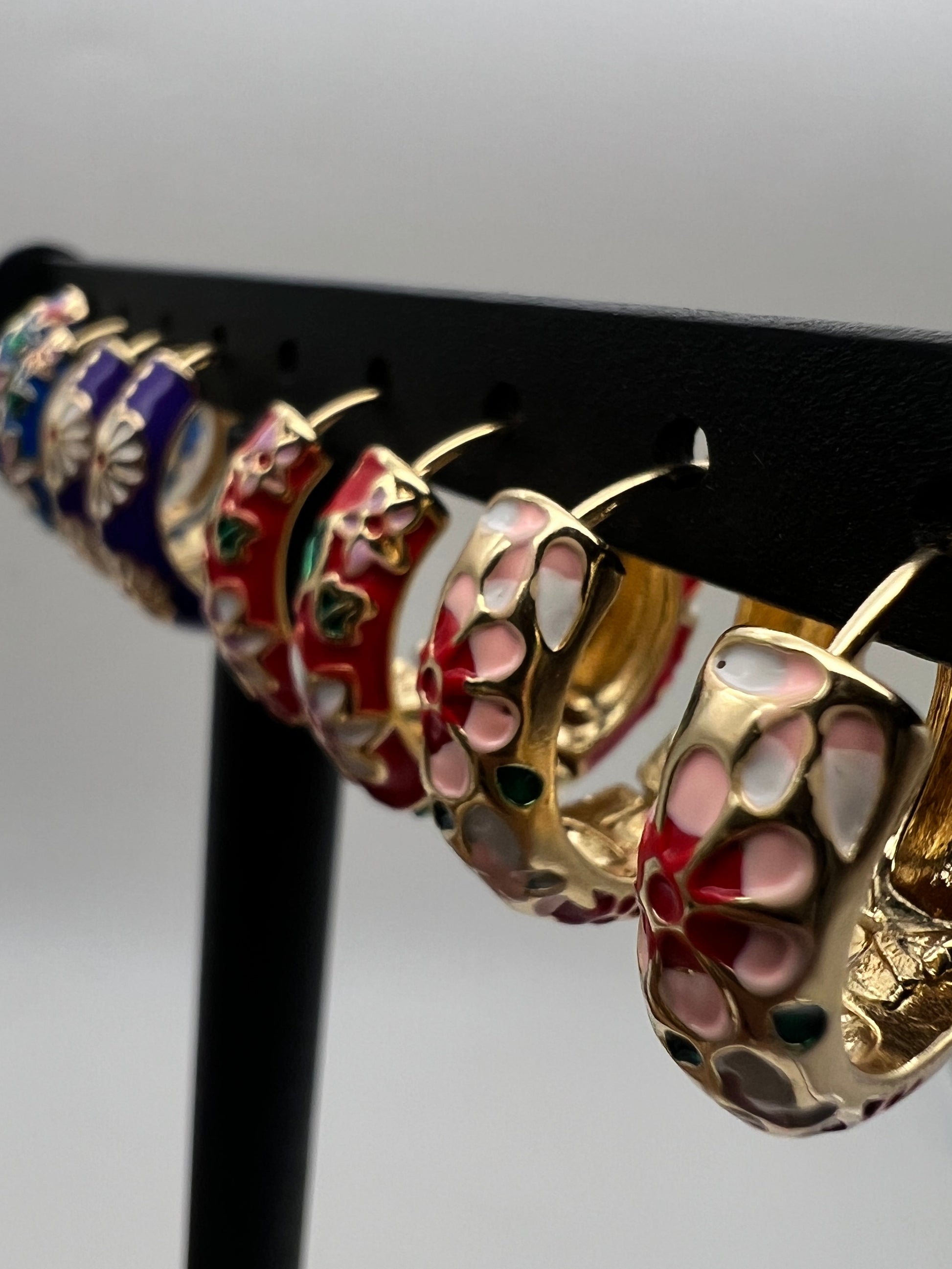 Golden glow, ruby bloom ✨ Gold enamel with ruby-pink floral accents