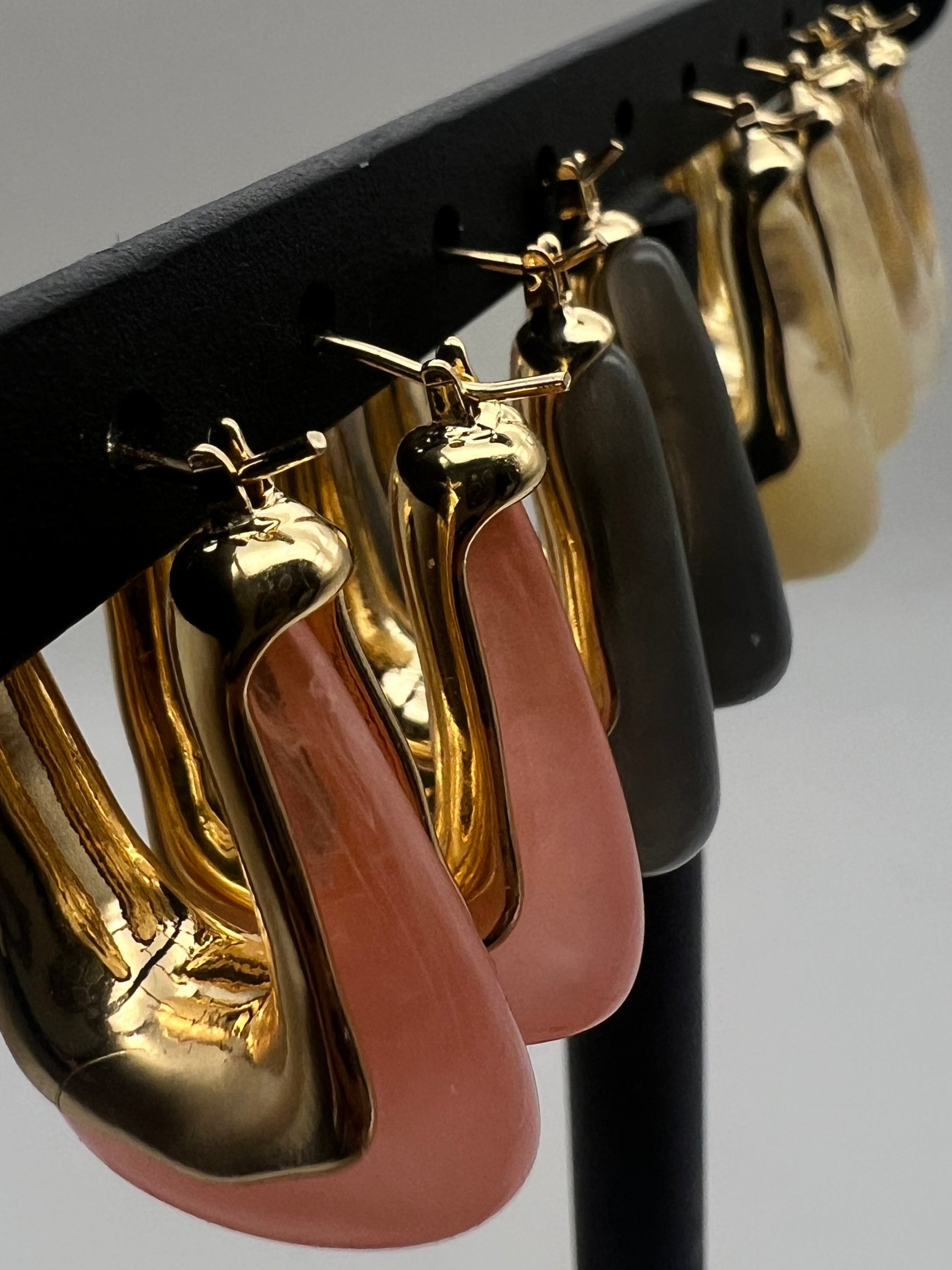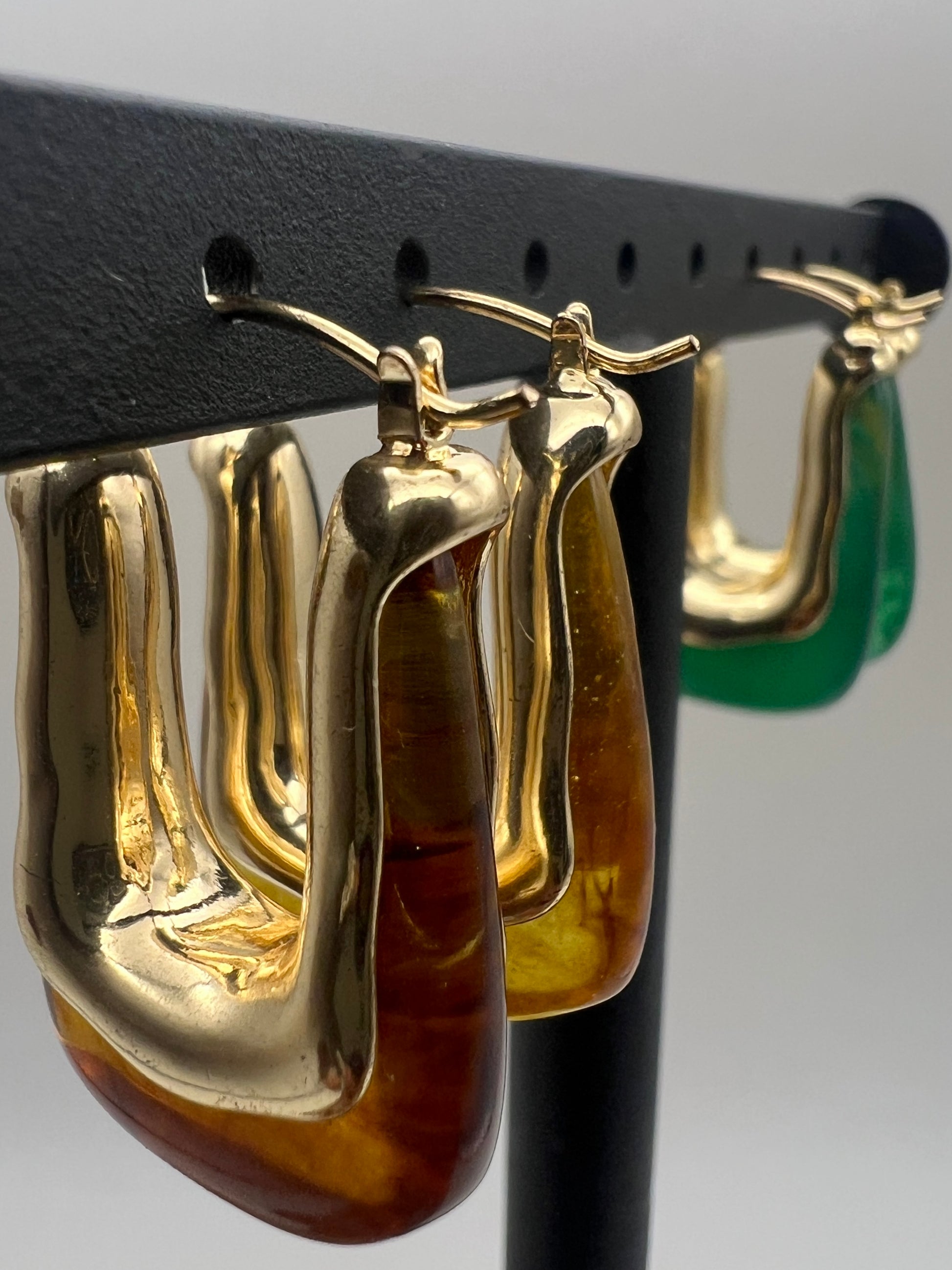Unveil your inner muse with the Molten Muse Hoops — earrings that melt the boundaries between jewellery and art. Sculpted in a flowing gold finish and fused with resin hues, each pair feels like wearable sculpture. Lightweight yet striking, they’re made to elevate your everyday and bring bold glamour to any moment.